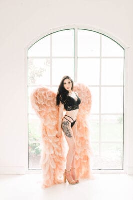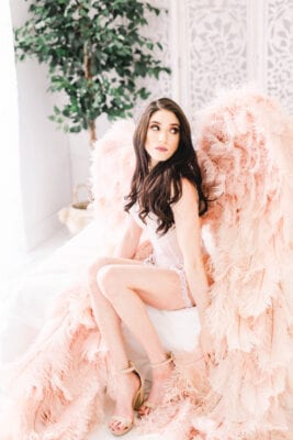 We loved capturing these beautiful images for Celia!  When we say her long legs, we knew we had to get her in those wings!  She rocked her session, and was such a natural.  Hair and Makeup will meet you at the studio, and Kelly will start laying out your setups and going through your options and our client closet to make the best possible outcome for your day.  We love pampering our clients and you can even sip on some champagne before your session.  We want to have fun, and create a fun and positive environment for everyone.  Make sure you reserve your session!