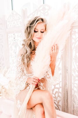 When we met Savannah for her session, we knew we were going to have a good time! Savannah had always wanted to try a shoot just to celebrate her, and to have some fun! We worked together on her looks, and couldn’t wait to try out the new blue Leah Marie Coutour Wings, which looked absolutely amazing on her! We laughed so much, and smiled the whole time she was there! She also wanted to personalize her session and brought her pink blow dryer! She is a hair and makeup artist herself, so we thought it would be fun to capture her in her element. We loved this session, and here are some shots from another successful Boudoir Session!