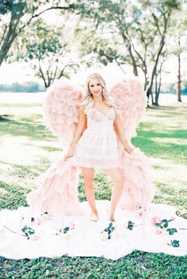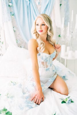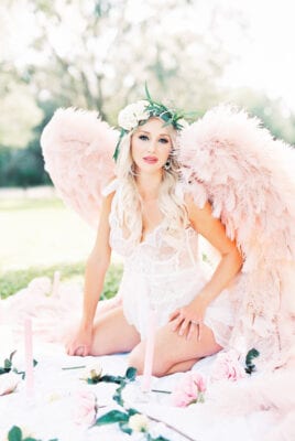 Melissa!! We have loved watching your journey from Bump to Baby, and girl you are making your after baby bod look so good!!! We loved every lingerie piece she brought, and baby blue just looked stunning on her!  Giving me real Disney princess vibes :). We has fresh garland and a flower crown made for her session, and they turned out absolutely gorgeous!  Taking the wings outdoors is becoming one of my favorite things to do!  We used film during her session, and film loves natural sunlight – just stunning!  Enjoy some of our favs
